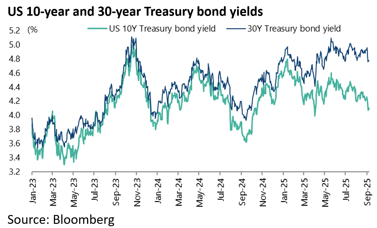 Still the 10-year and 30-year Treasury bond yields are now 53bp and 37bp below their recent high seen in May post Liberation Day which is a positive for the Trump administration, though they still in this writer’s view reflect a certain supply premium, especially the 30-year.