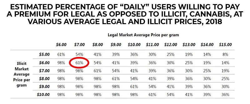 The government itself admits that only 60% of the population at most would be willing to pay over a $1/gram more for legal vs illicit marijuana.