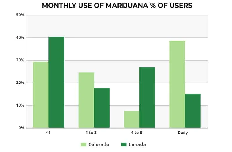 Using smoking prevalence rates from the U.S. National Survey on Drug Use and Health (NSDUH) and reported grams consumed on days of use, we arrived at an average usage rate of 0.5 grams per day for the average user in Colorado. The PBOC study in Canada found similar daily usage rates.