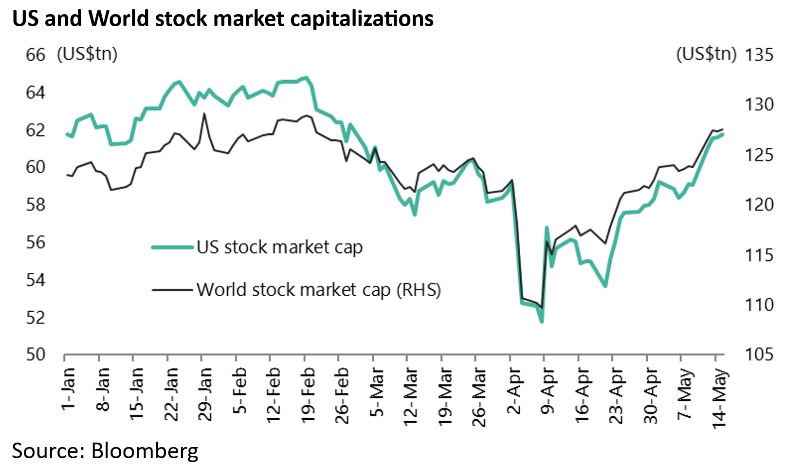 The S&P500 has risen by 23% since bottoming on 7 April (intraday low) and is up 20% from the closing low on 8 April, the day before the U-turn.
