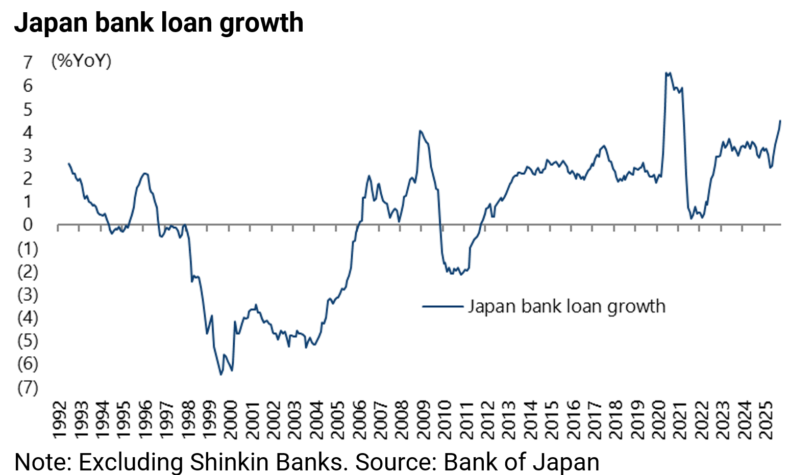 This is the strongest loan growth in Japan, excluding the post-pandemic period, since the data series began in 1992 following the peak of the Bubble Economy in 1990.