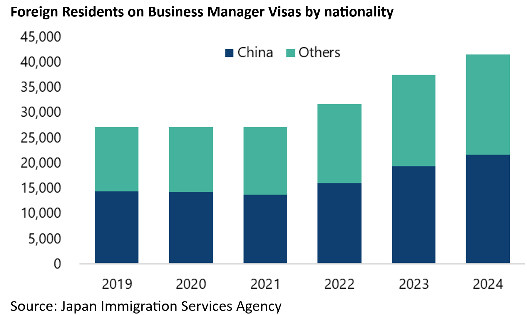 Immigration data shows that 41,615 foreigners held such visas at the end of 2024, up 11% YoY, with Chinese nationals making up 2,741 or 52% of the total.