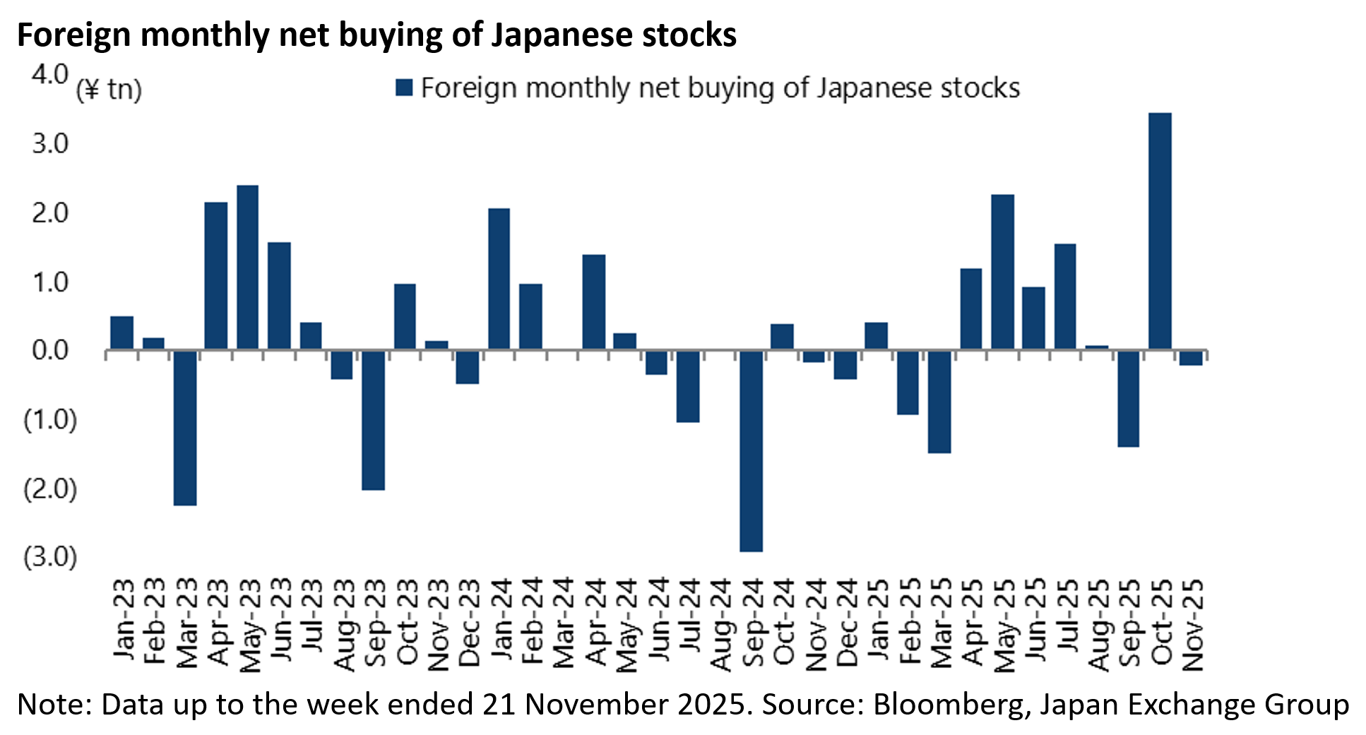Topix-listed firms have announced Y11.5tn of share buybacks since the start of the fiscal year while foreign investors have been net buyers for six of the past eight months, purchasing a net Y7.82tn worth of Japanese stocks since April, after selling a net Y2.01tn in 1Q25.