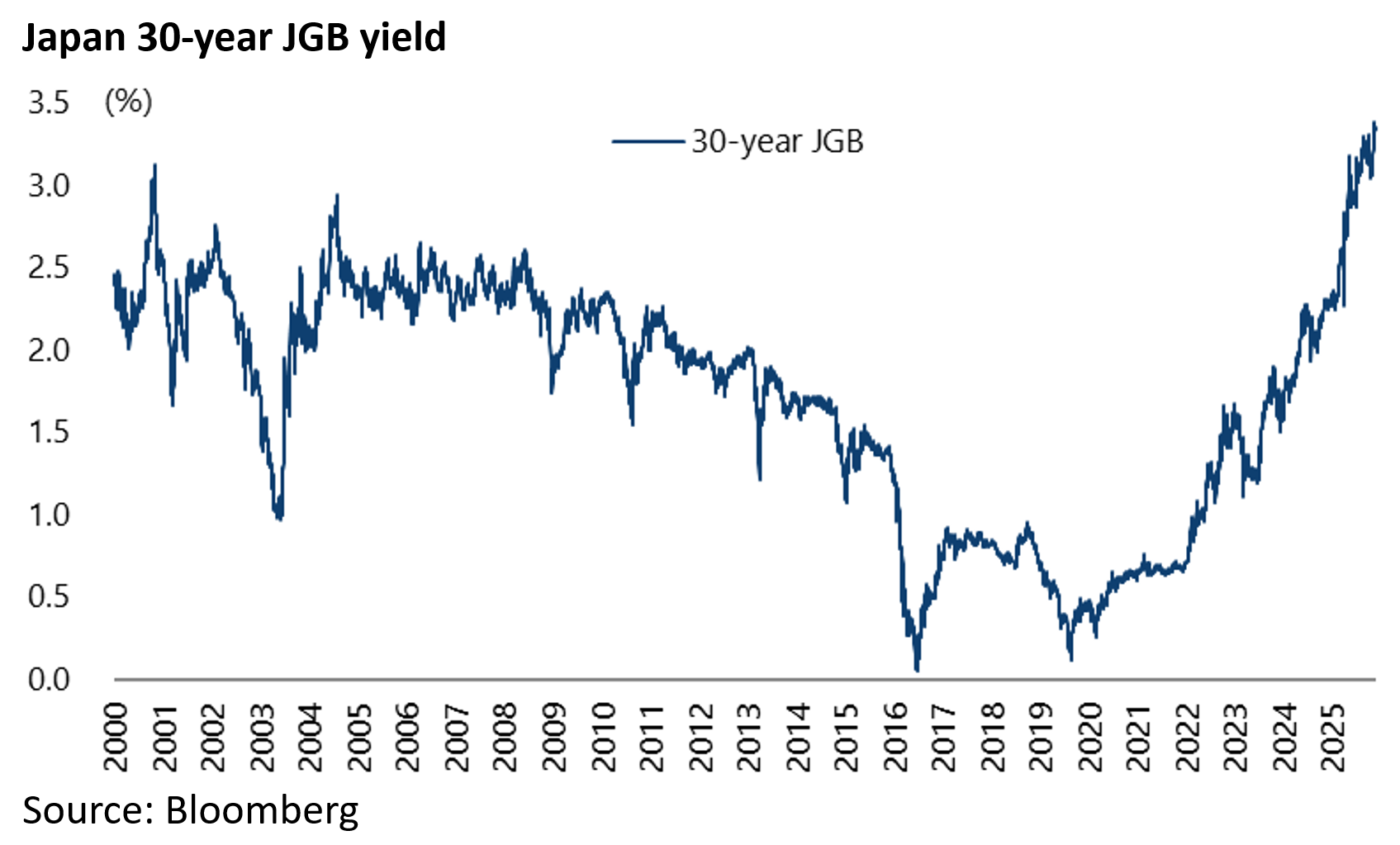 The risk about being too cautious is a further steepening of the yield curve with the 30-year JGB yield now 3.35%.